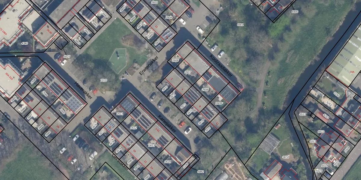 Het perceel waarop Karwijakker 4 staat heeft een oppervlakte van 84 m². Dit is een klein perceel. De perceeloppervlakte wordt geregistreerd door het Kadaster. Gedetailleerde informatie over de maten van dit perceel kunt u vinden in het rapport Kadastrale kaart met maatvoering van Karwijakker 4.