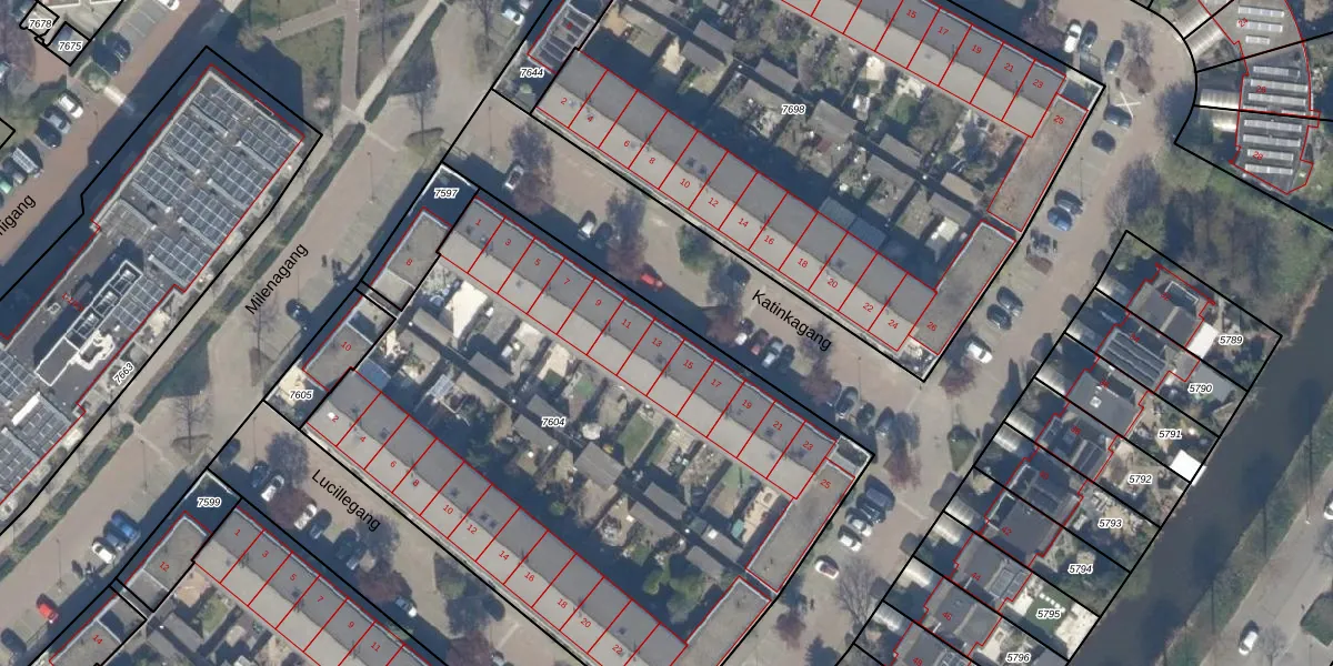 Katinkagang 13 is gelegen op kadastraal perceel ZWD01C7604. Deze kadastrale aanduiding is uniek en wordt gebruikt door het Kadaster om eigendomsrechten en andere zakelijke rechten vast te leggen. Het perceel maakt onderdeel uit van de kadastrale gemeente Zegwaard.