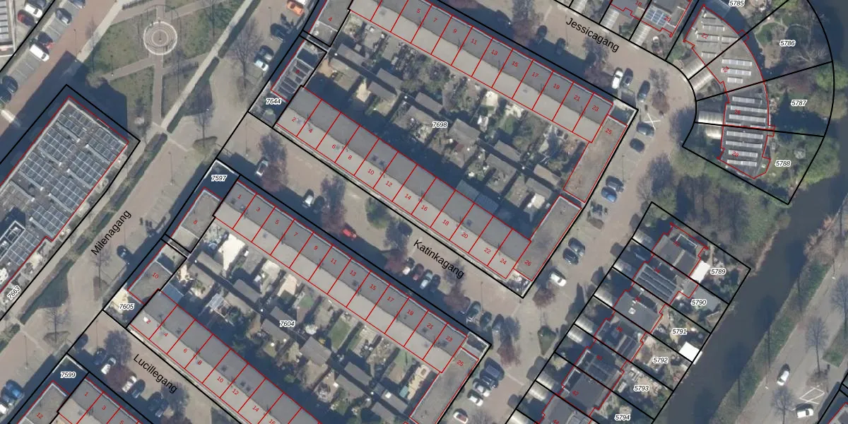 Het perceel waarop Katinkagang 16 staat heeft een oppervlakte van 3484 m². Dit is een zeer groot perceel. De perceeloppervlakte wordt geregistreerd door het Kadaster. Gedetailleerde informatie over de maten van dit perceel kunt u vinden in het rapport Kadastrale kaart met maatvoering van Katinkagang 16.