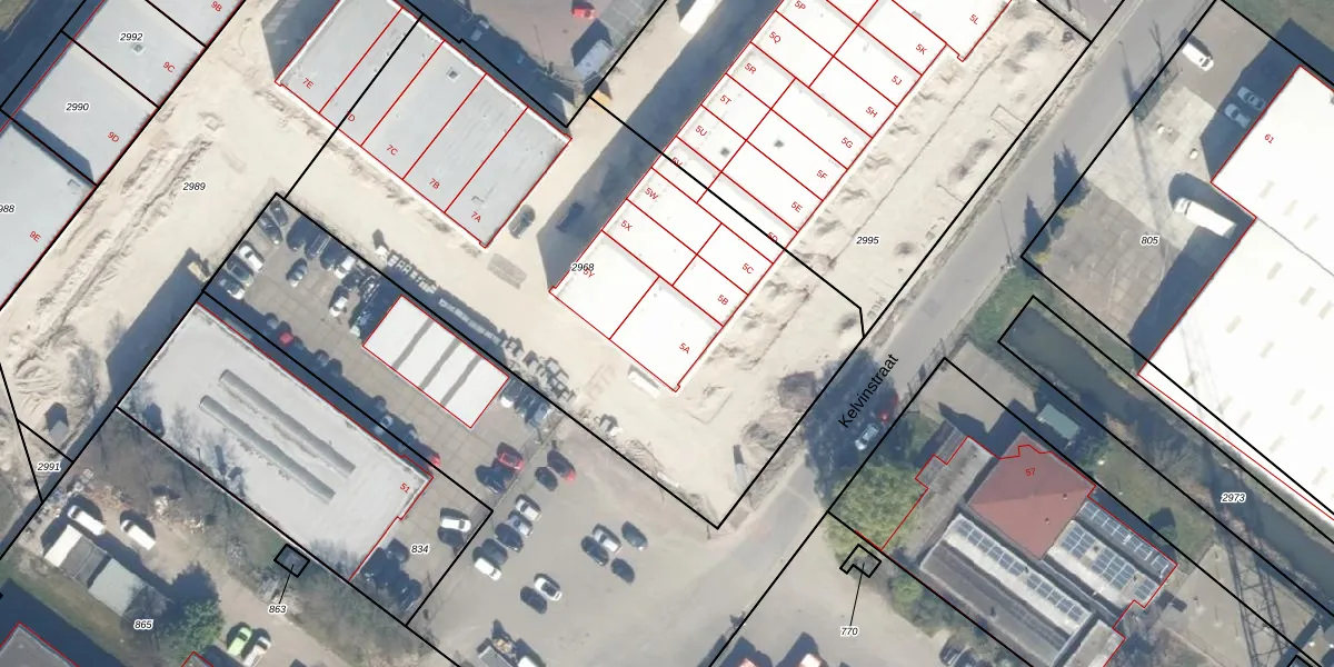 Het perceel waarop Kelvinstraat 5-A staat heeft een oppervlakte van 3100 m². Dit is een zeer groot perceel. De perceeloppervlakte wordt geregistreerd door het Kadaster. Gedetailleerde informatie over de maten van dit perceel kunt u vinden in het rapport Kadastrale kaart met maatvoering van Kelvinstraat 5-A.