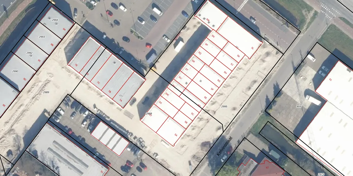Het perceel waarop Kelvinstraat 5-V staat heeft een oppervlakte van 2882 m². Dit is een zeer groot perceel. De perceeloppervlakte wordt geregistreerd door het Kadaster. Gedetailleerde informatie over de maten van dit perceel kunt u vinden in het rapport Kadastrale kaart met maatvoering van Kelvinstraat 5-V.