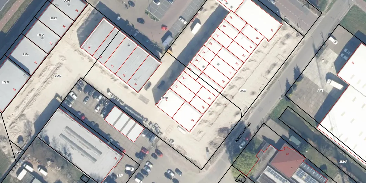 Het perceel waarop Kelvinstraat 5-X staat heeft een oppervlakte van 3100 m². Dit is een zeer groot perceel. De perceeloppervlakte wordt geregistreerd door het Kadaster. Gedetailleerde informatie over de maten van dit perceel kunt u vinden in het rapport Kadastrale kaart met maatvoering van Kelvinstraat 5-X.