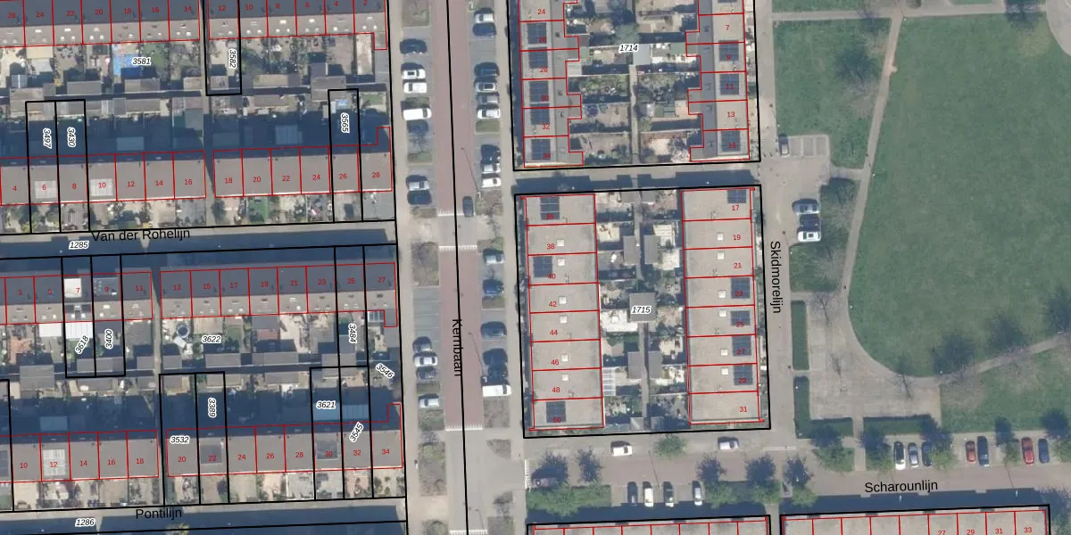 Het perceel waarop Kernbaan 40 staat heeft een oppervlakte van 2093 m². Dit is een zeer groot perceel. De perceeloppervlakte wordt geregistreerd door het Kadaster. Gedetailleerde informatie over de maten van dit perceel kunt u vinden in het rapport Kadastrale kaart met maatvoering van Kernbaan 40.