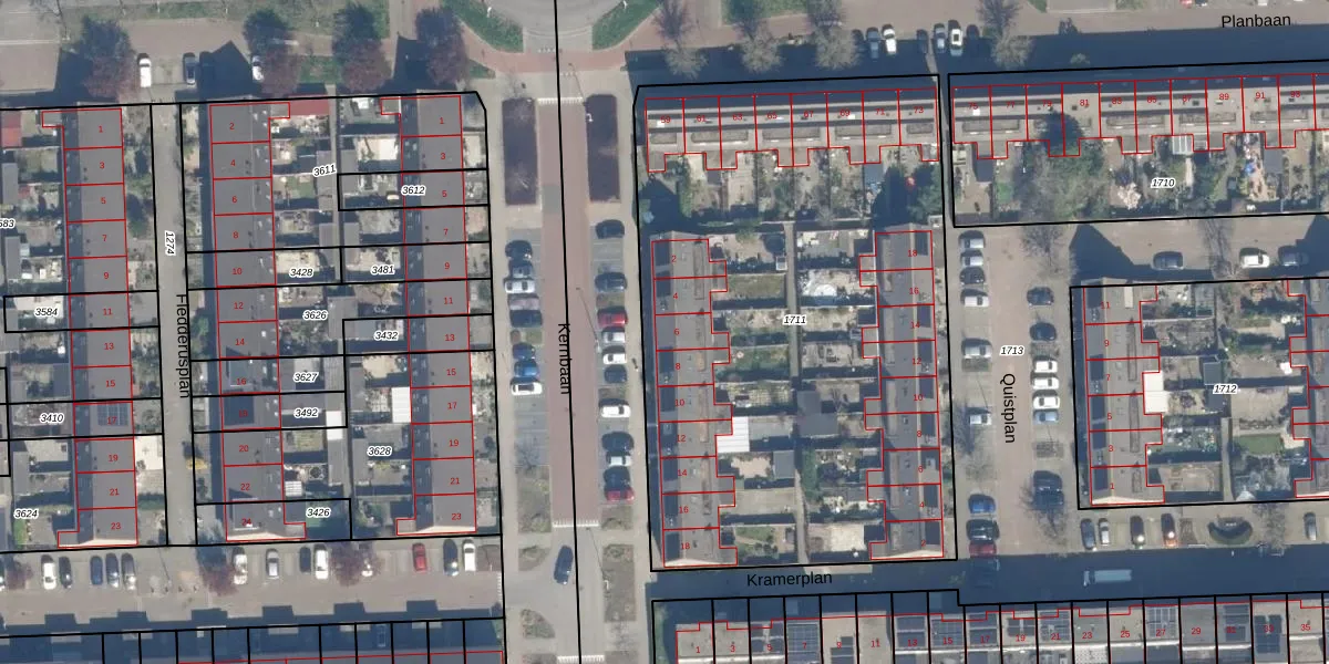 Het perceel waarop Kernbaan 6 staat heeft een oppervlakte van 3360 m². Dit is een zeer groot perceel. De perceeloppervlakte wordt geregistreerd door het Kadaster. Gedetailleerde informatie over de maten van dit perceel kunt u vinden in het rapport Kadastrale kaart met maatvoering van Kernbaan 6.