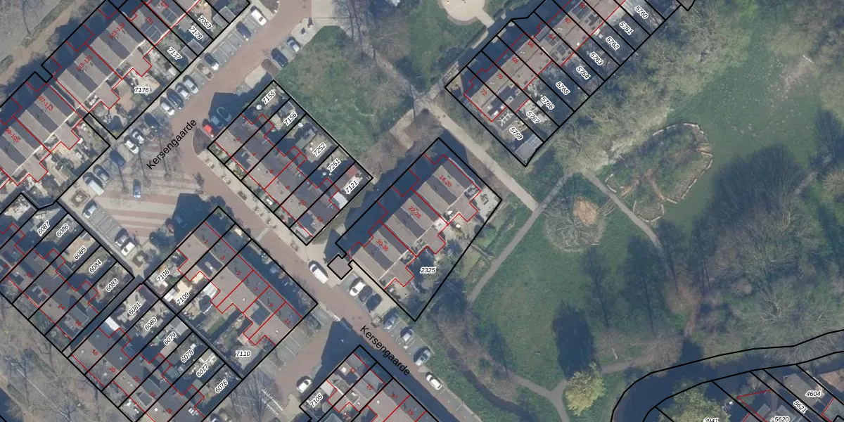 Het perceel waarop Kersengaarde 24 staat heeft een oppervlakte van 849 m². Dit is een groot perceel. De perceeloppervlakte wordt geregistreerd door het Kadaster. Gedetailleerde informatie over de maten van dit perceel kunt u vinden in het rapport Kadastrale kaart met maatvoering van Kersengaarde 24.