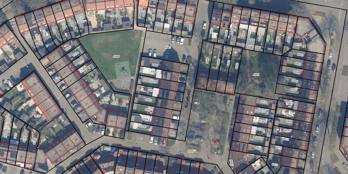 Gebruik de zoekbalk of klik op een perceel voor informatie over de adressen binnen dit perceel.