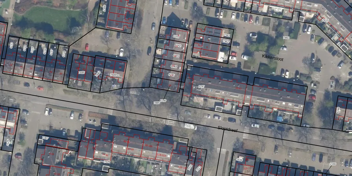 Gebruik de zoekbalk of klik op een perceel voor informatie over de adressen binnen dit perceel.