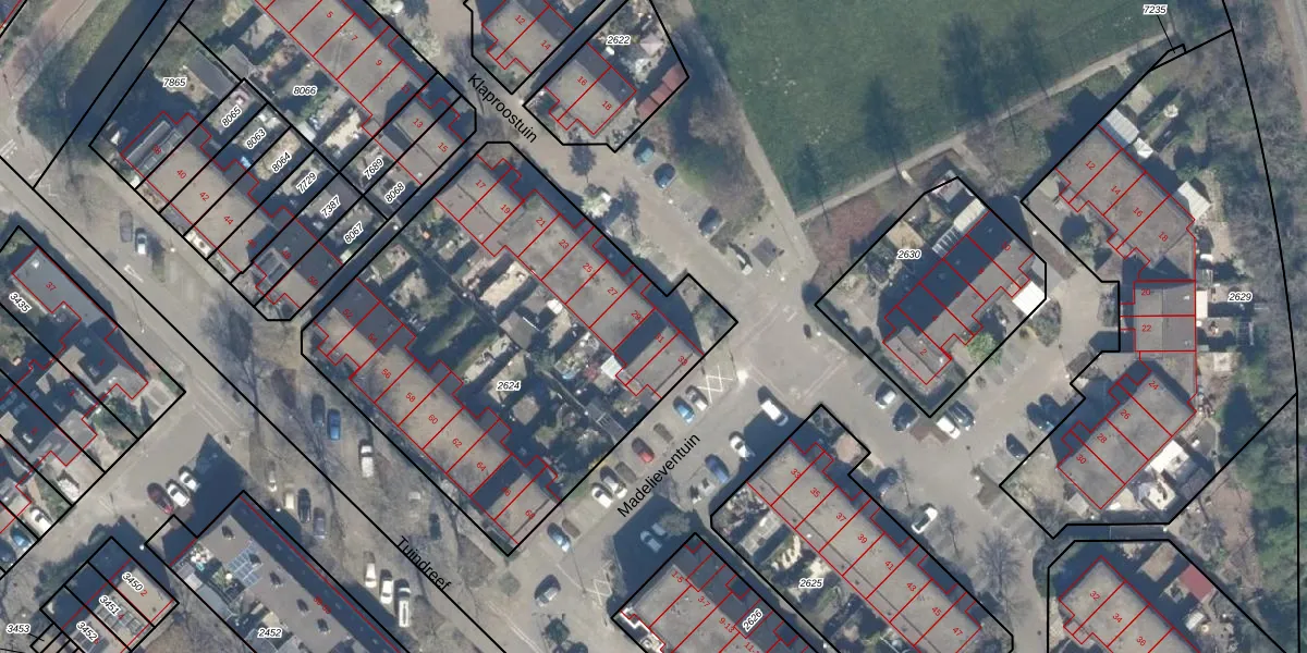 Het perceel waarop Klaproostuin 31 staat heeft een oppervlakte van 2160 m². Dit is een zeer groot perceel. De perceeloppervlakte wordt geregistreerd door het Kadaster. Gedetailleerde informatie over de maten van dit perceel kunt u vinden in het rapport Kadastrale kaart met maatvoering van Klaproostuin 31.