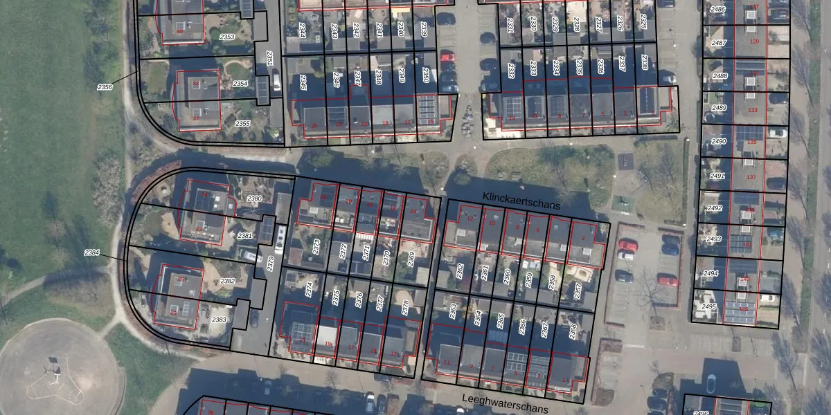 Gebruik de zoekbalk of klik op een perceel voor informatie over de adressen binnen dit perceel.