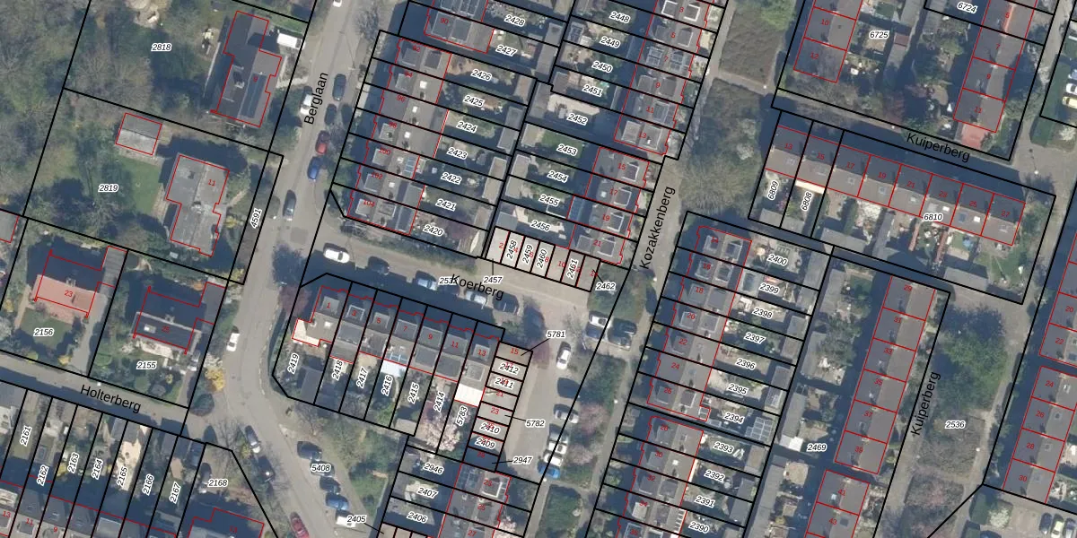 Gebruik de zoekbalk of klik op een perceel voor informatie over de adressen binnen dit perceel.