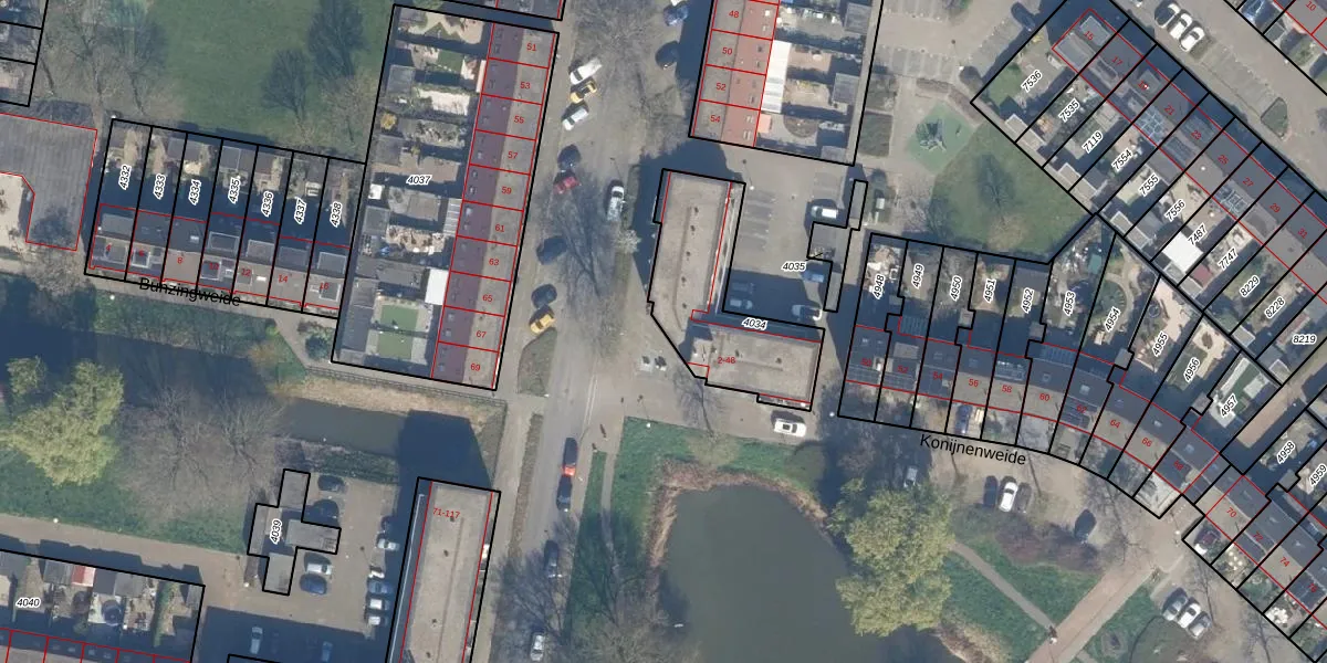 Het perceel waarop Konijnenweide 40 staat heeft een oppervlakte van 497 m². Dit is een groot perceel. De perceeloppervlakte wordt geregistreerd door het Kadaster. Gedetailleerde informatie over de maten van dit perceel kunt u vinden in het rapport Kadastrale kaart met maatvoering van Konijnenweide 40.