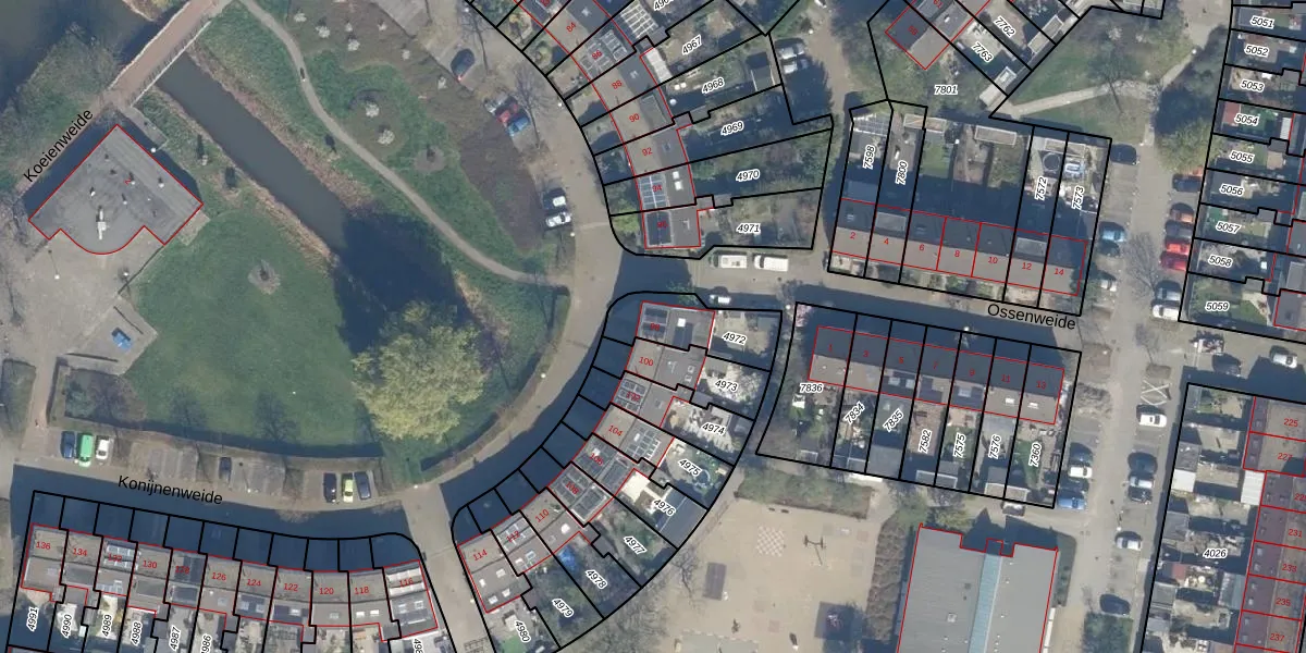 Gebruik de zoekbalk of klik op een perceel voor informatie over de adressen binnen dit perceel.