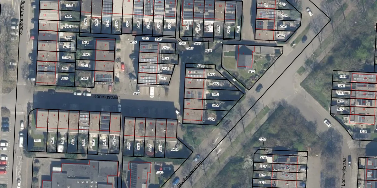 Gebruik de zoekbalk of klik op een perceel voor informatie over de adressen binnen dit perceel.