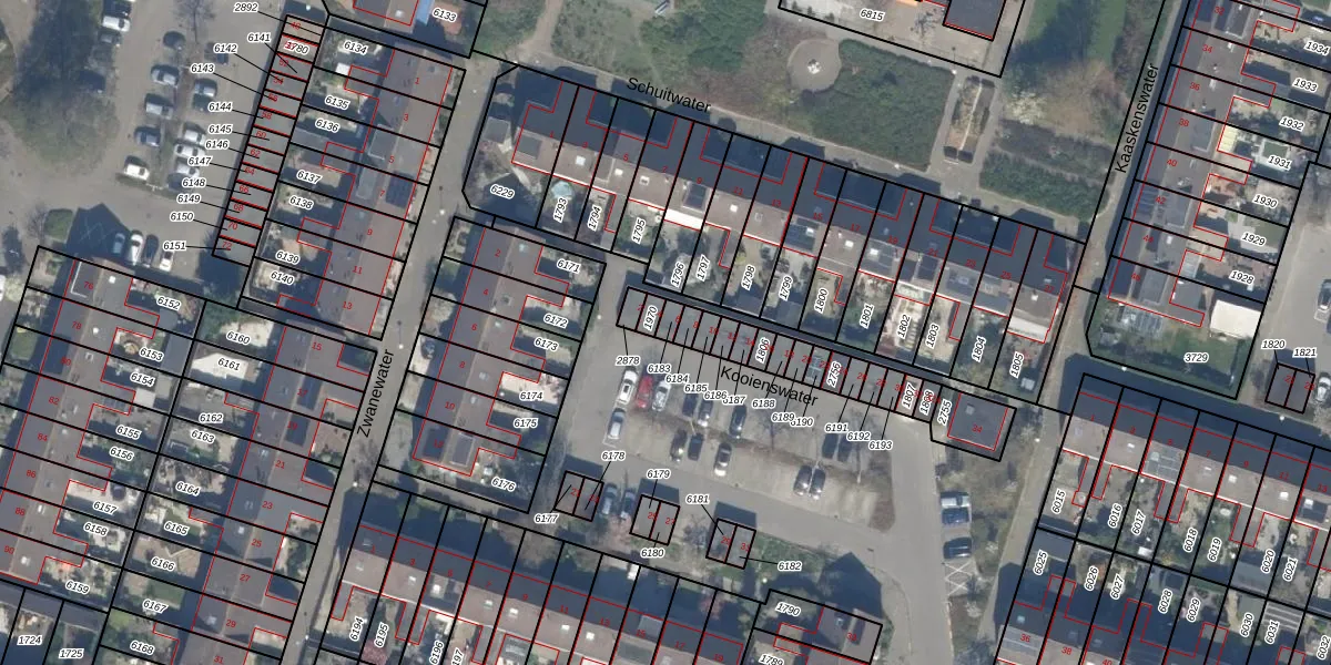 Gebruik de zoekbalk of klik op een perceel voor informatie over de adressen binnen dit perceel.