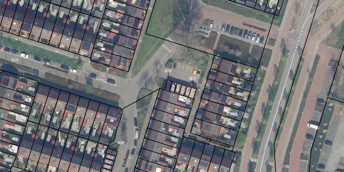 Het perceel waarop Kooienswater 61 staat heeft een oppervlakte van 17 m². Dit is een klein perceel. De perceeloppervlakte wordt geregistreerd door het Kadaster. Gedetailleerde informatie over de maten van dit perceel kunt u vinden in het rapport Kadastrale kaart met maatvoering van Kooienswater 61.