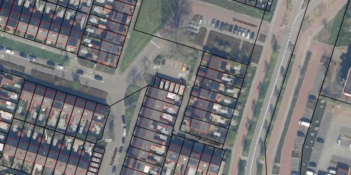 Het perceel waarop Kooienswater 67 staat heeft een oppervlakte van 17 m². Dit is een klein perceel. De perceeloppervlakte wordt geregistreerd door het Kadaster. Gedetailleerde informatie over de maten van dit perceel kunt u vinden in het rapport Kadastrale kaart met maatvoering van Kooienswater 67.