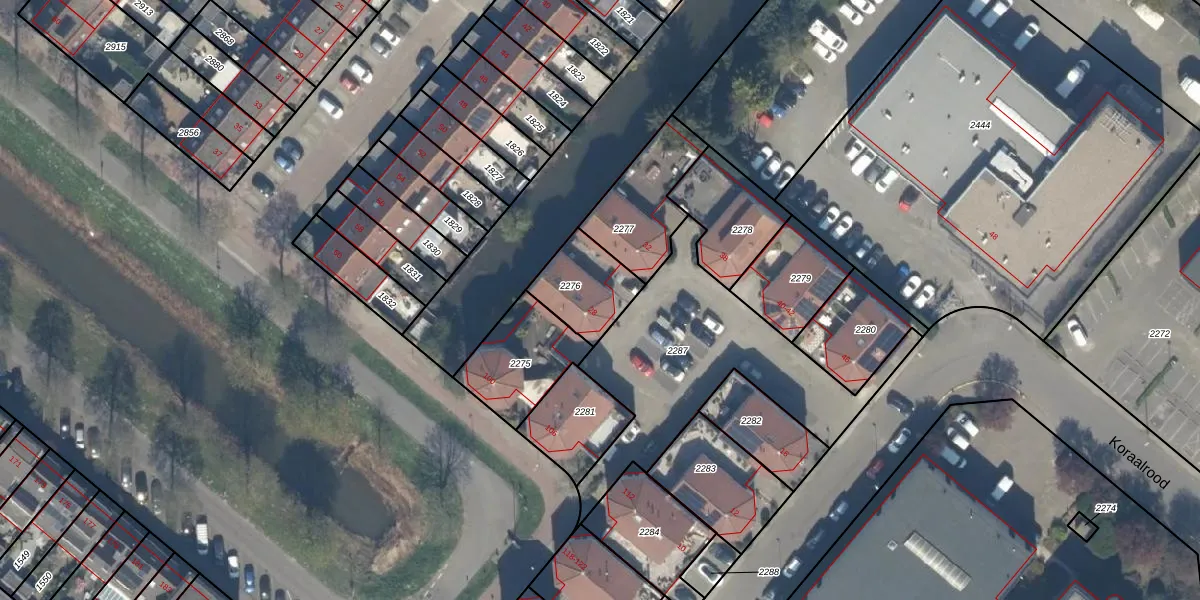 Het perceel waarop Koraalrood 28 staat heeft een oppervlakte van 202 m². Dit is een middelgroot perceel. De perceeloppervlakte wordt geregistreerd door het Kadaster. Gedetailleerde informatie over de maten van dit perceel kunt u vinden in het rapport Kadastrale kaart met maatvoering van Koraalrood 28.
