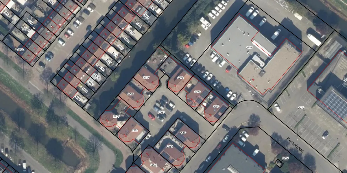Gebruik de zoekbalk of klik op een perceel voor informatie over de adressen binnen dit perceel.