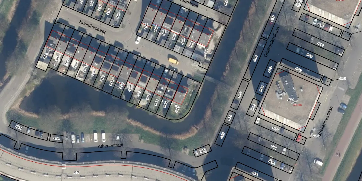 Het perceel waarop Korinthestraat 15 staat heeft een oppervlakte van 262 m². Dit is een middelgroot perceel. De perceeloppervlakte wordt geregistreerd door het Kadaster. Gedetailleerde informatie over de maten van dit perceel kunt u vinden in het rapport Kadastrale kaart met maatvoering van Korinthestraat 15.