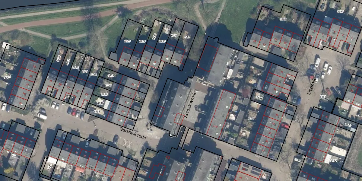 Het perceel waarop Korsakovrode 13 staat heeft een oppervlakte van 5170 m². Dit is een zeer groot perceel. De perceeloppervlakte wordt geregistreerd door het Kadaster. Gedetailleerde informatie over de maten van dit perceel kunt u vinden in het rapport Kadastrale kaart met maatvoering van Korsakovrode 13.