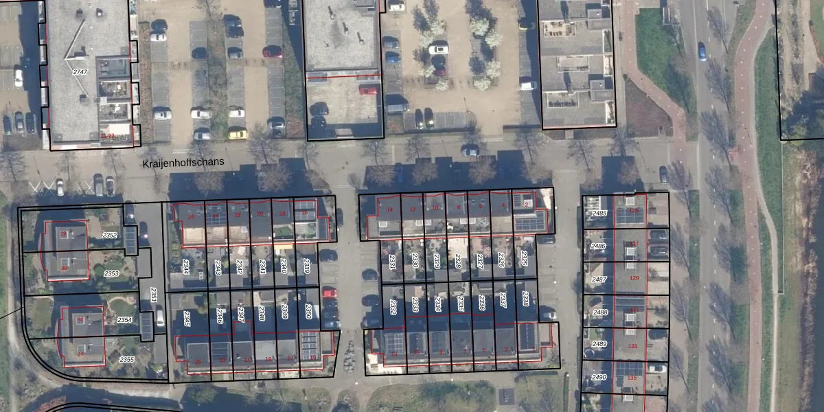 Gebruik de zoekbalk of klik op een perceel voor informatie over de adressen binnen dit perceel.