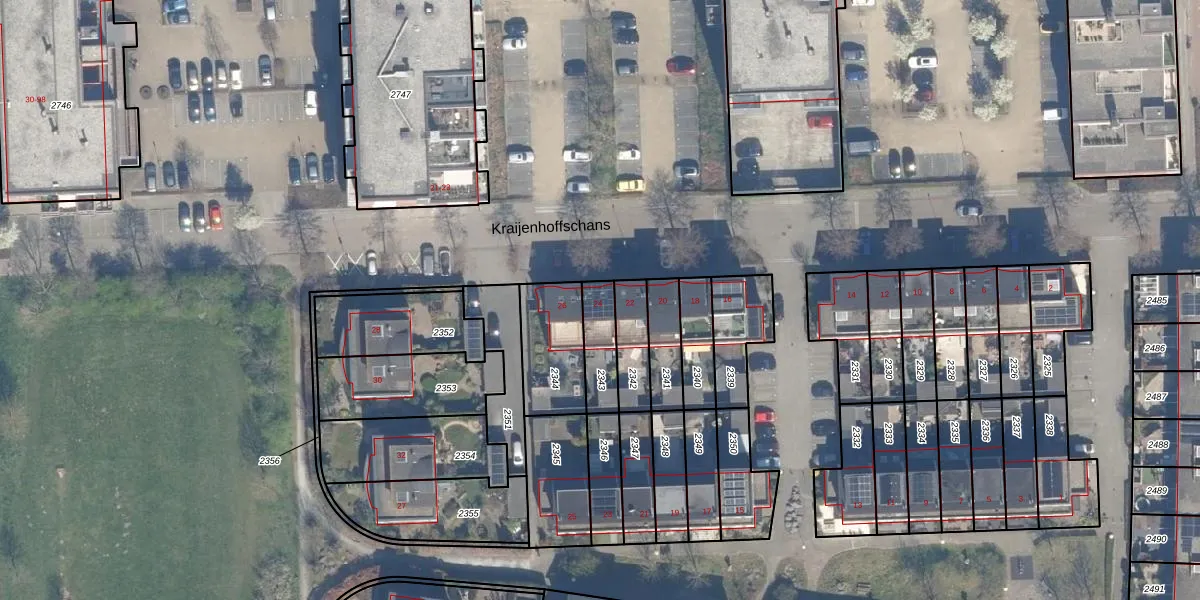 Het perceel waarop Kraijenhoffschans 24 staat heeft een oppervlakte van 119 m². Dit is een middelgroot perceel. De perceeloppervlakte wordt geregistreerd door het Kadaster. Gedetailleerde informatie over de maten van dit perceel kunt u vinden in het rapport Kadastrale kaart met maatvoering van Kraijenhoffschans 24.