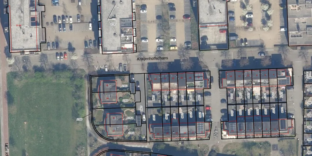 Het perceel waarop Kraijenhoffschans 26 staat heeft een oppervlakte van 229 m². Dit is een middelgroot perceel. De perceeloppervlakte wordt geregistreerd door het Kadaster. Gedetailleerde informatie over de maten van dit perceel kunt u vinden in het rapport Kadastrale kaart met maatvoering van Kraijenhoffschans 26.