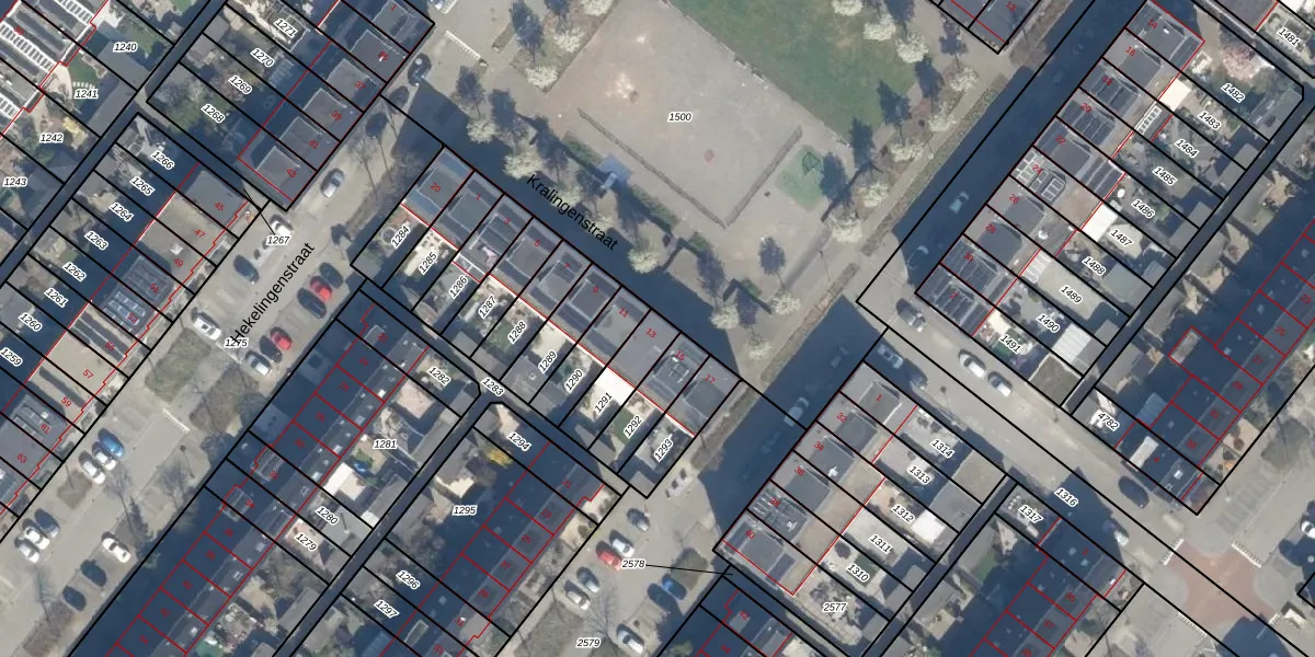 Het perceel waarop Kralingenstraat 13 staat heeft een oppervlakte van 132 m². Dit is een middelgroot perceel. De perceeloppervlakte wordt geregistreerd door het Kadaster. Gedetailleerde informatie over de maten van dit perceel kunt u vinden in het rapport Kadastrale kaart met maatvoering van Kralingenstraat 13.