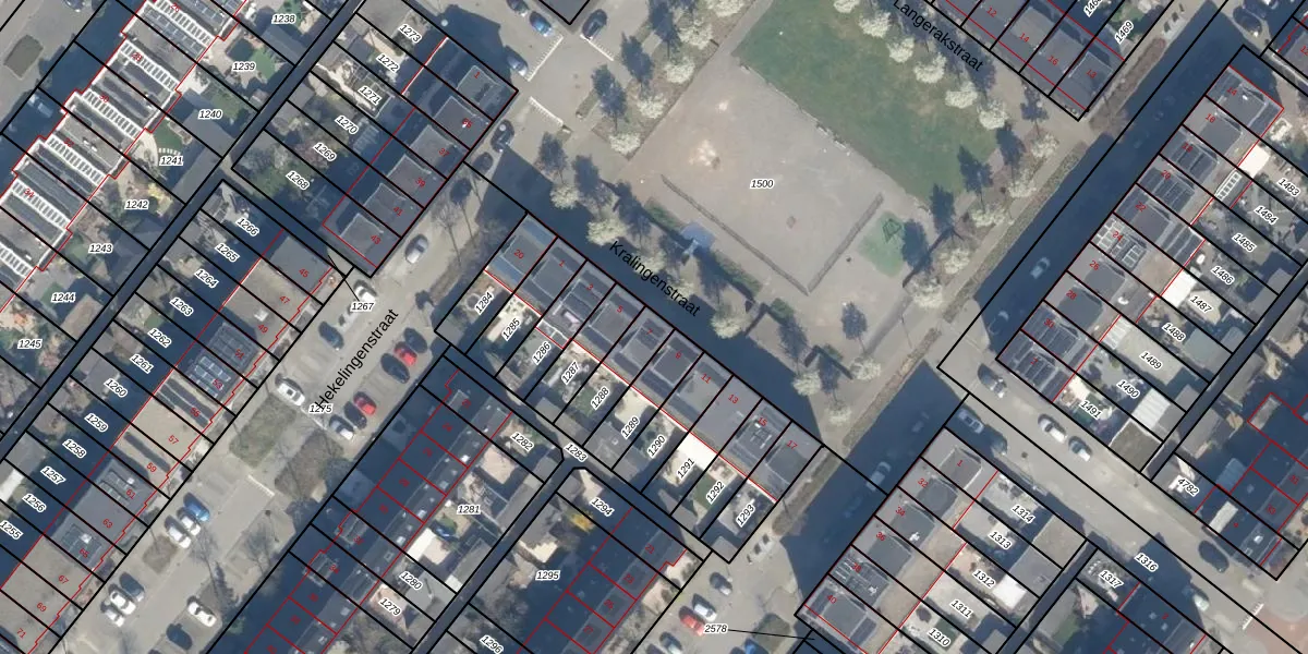 Gebruik de zoekbalk of klik op een perceel voor informatie over de adressen binnen dit perceel.