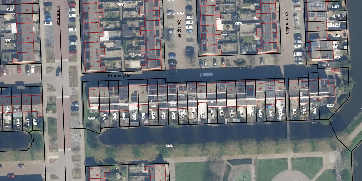 Gebruik de zoekbalk of klik op een perceel voor informatie over de adressen binnen dit perceel.