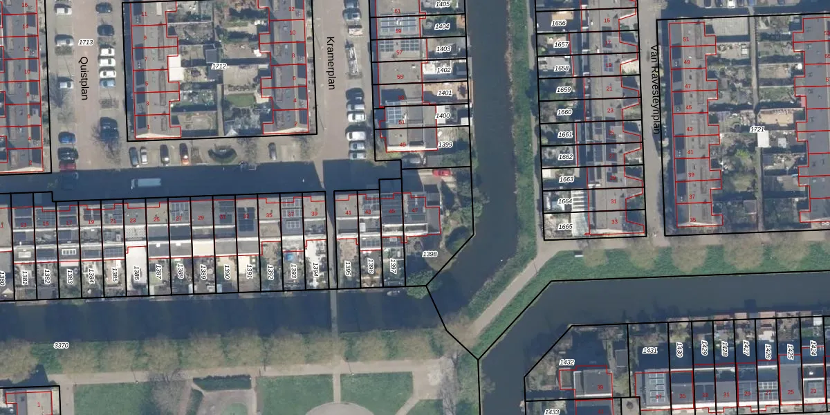 Het perceel waarop Kramerplan 47 staat heeft een oppervlakte van 404 m². Dit is een groot perceel. De perceeloppervlakte wordt geregistreerd door het Kadaster. Gedetailleerde informatie over de maten van dit perceel kunt u vinden in het rapport Kadastrale kaart met maatvoering van Kramerplan 47.