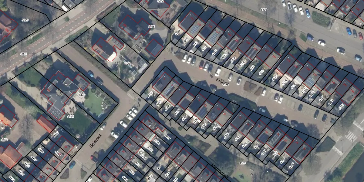 Het perceel waarop Krijtwit 5 staat heeft een oppervlakte van 121 m². Dit is een middelgroot perceel. De perceeloppervlakte wordt geregistreerd door het Kadaster. Gedetailleerde informatie over de maten van dit perceel kunt u vinden in het rapport Kadastrale kaart met maatvoering van Krijtwit 5.