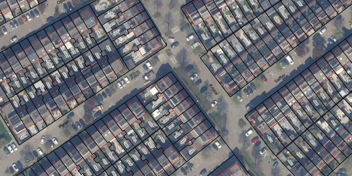 Het perceel waarop Kristal 33 staat heeft een oppervlakte van 131 m². Dit is een middelgroot perceel. De perceeloppervlakte wordt geregistreerd door het Kadaster. Gedetailleerde informatie over de maten van dit perceel kunt u vinden in het rapport Kadastrale kaart met maatvoering van Kristal 33.