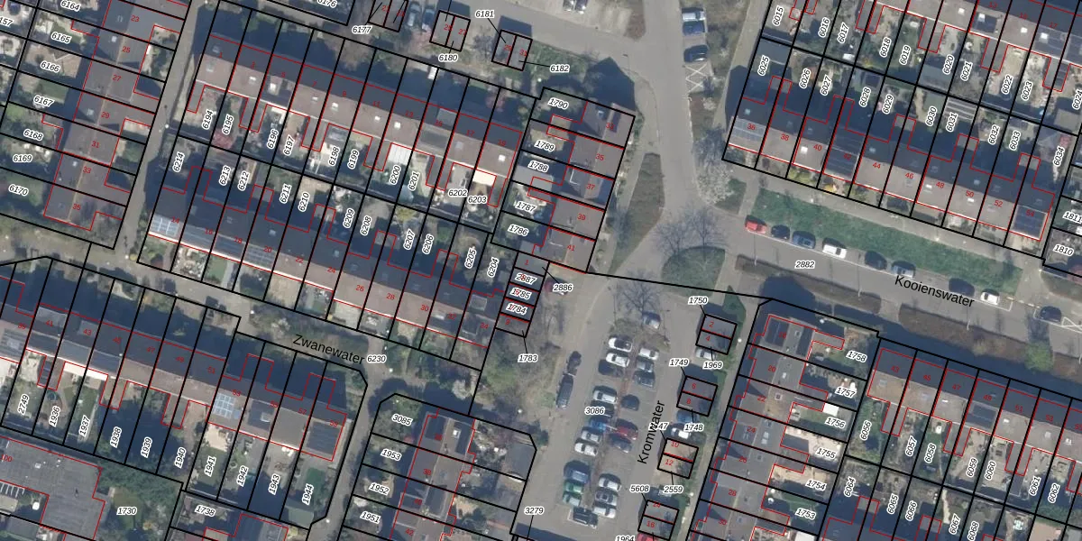 Het perceel waarop Kromwater 1 staat heeft een oppervlakte van 17 m². Dit is een klein perceel. De perceeloppervlakte wordt geregistreerd door het Kadaster. Gedetailleerde informatie over de maten van dit perceel kunt u vinden in het rapport Kadastrale kaart met maatvoering van Kromwater 1.