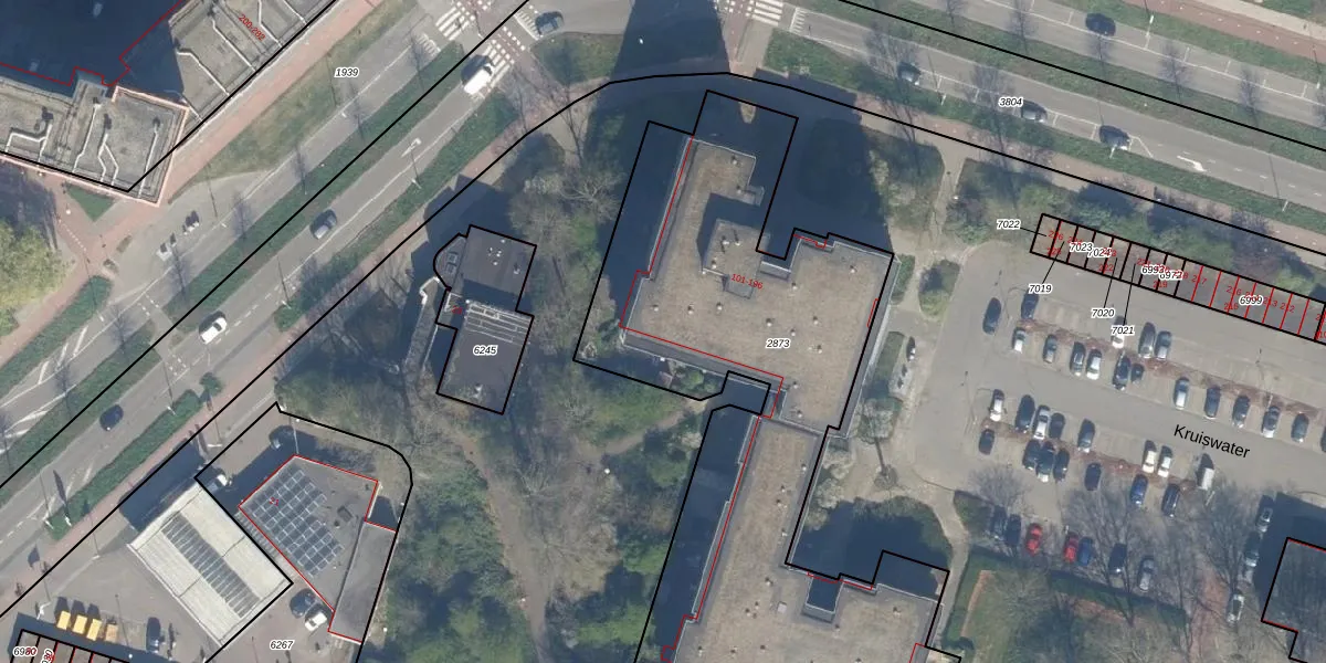 Kruiswater 106 is gelegen op kadastraal perceel ZTM00E2873. Deze kadastrale aanduiding is uniek en wordt gebruikt door het Kadaster om eigendomsrechten en andere zakelijke rechten vast te leggen. Het perceel maakt onderdeel uit van de kadastrale gemeente Zoetermeer.