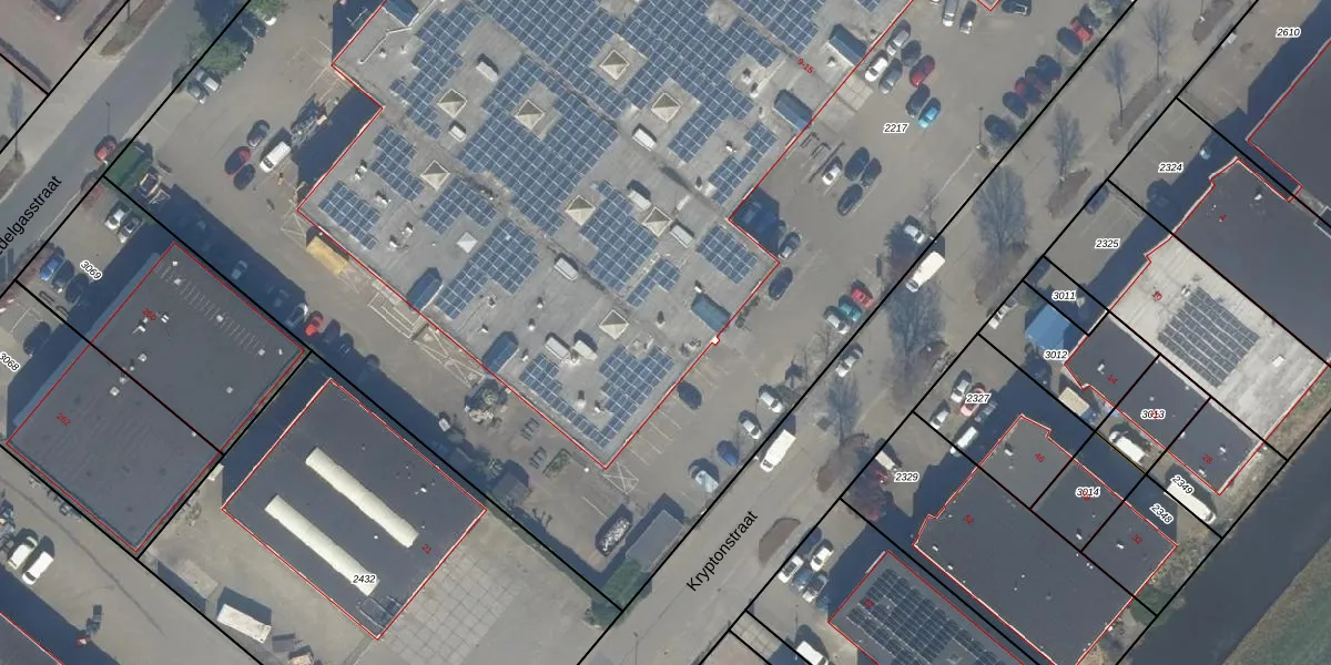 Het perceel waarop Kryptonstraat 15 staat heeft een oppervlakte van 1,6 ha. Dit is een zeer groot perceel. De perceeloppervlakte wordt geregistreerd door het Kadaster. Gedetailleerde informatie over de maten van dit perceel kunt u vinden in het rapport Kadastrale kaart met maatvoering van Kryptonstraat 15.