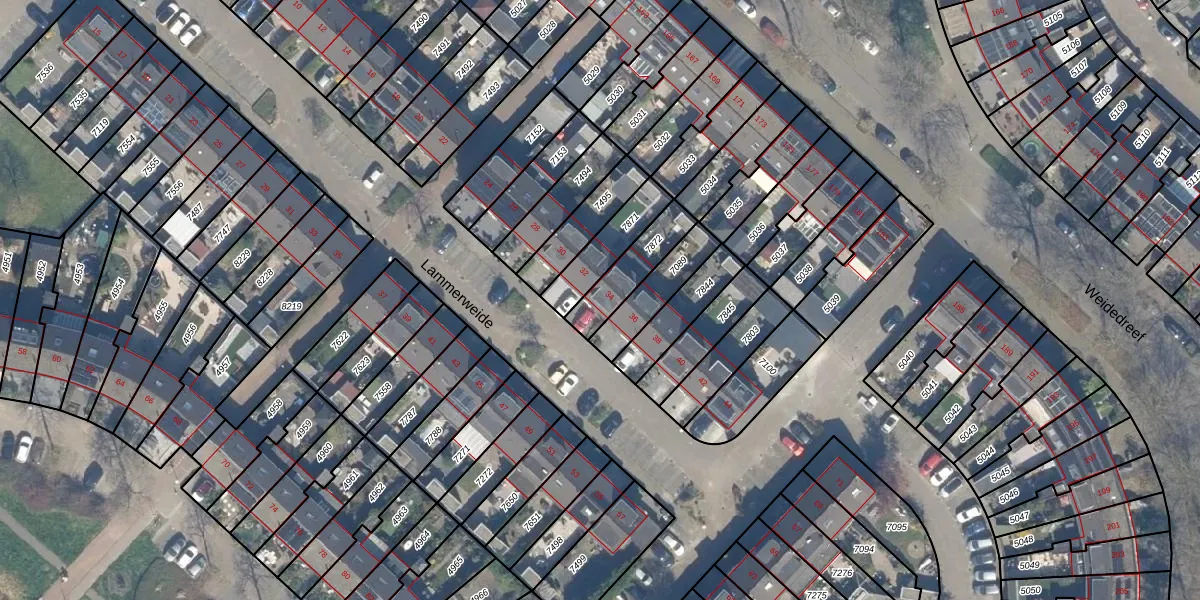 Het perceel waarop Lammerweide 34 staat heeft een oppervlakte van 148 m². Dit is een middelgroot perceel. De perceeloppervlakte wordt geregistreerd door het Kadaster. Gedetailleerde informatie over de maten van dit perceel kunt u vinden in het rapport Kadastrale kaart met maatvoering van Lammerweide 34.