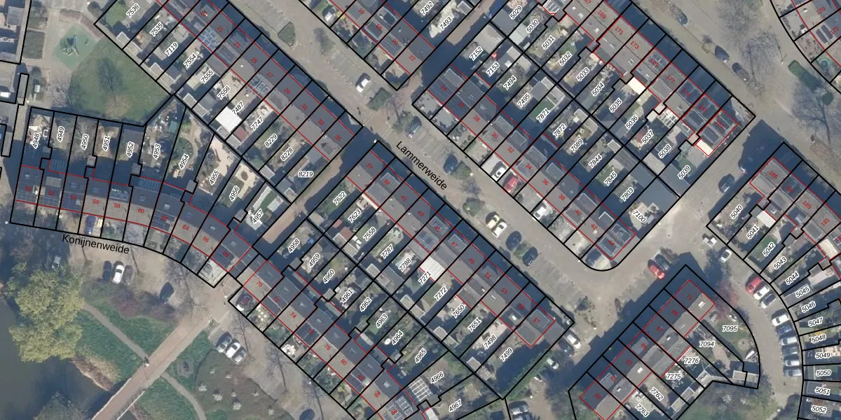 Het perceel waarop Lammerweide 43 staat heeft een oppervlakte van 136 m². Dit is een middelgroot perceel. De perceeloppervlakte wordt geregistreerd door het Kadaster. Gedetailleerde informatie over de maten van dit perceel kunt u vinden in het rapport Kadastrale kaart met maatvoering van Lammerweide 43.
