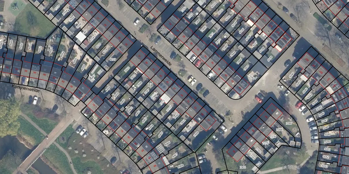 Gebruik de zoekbalk of klik op een perceel voor informatie over de adressen binnen dit perceel.