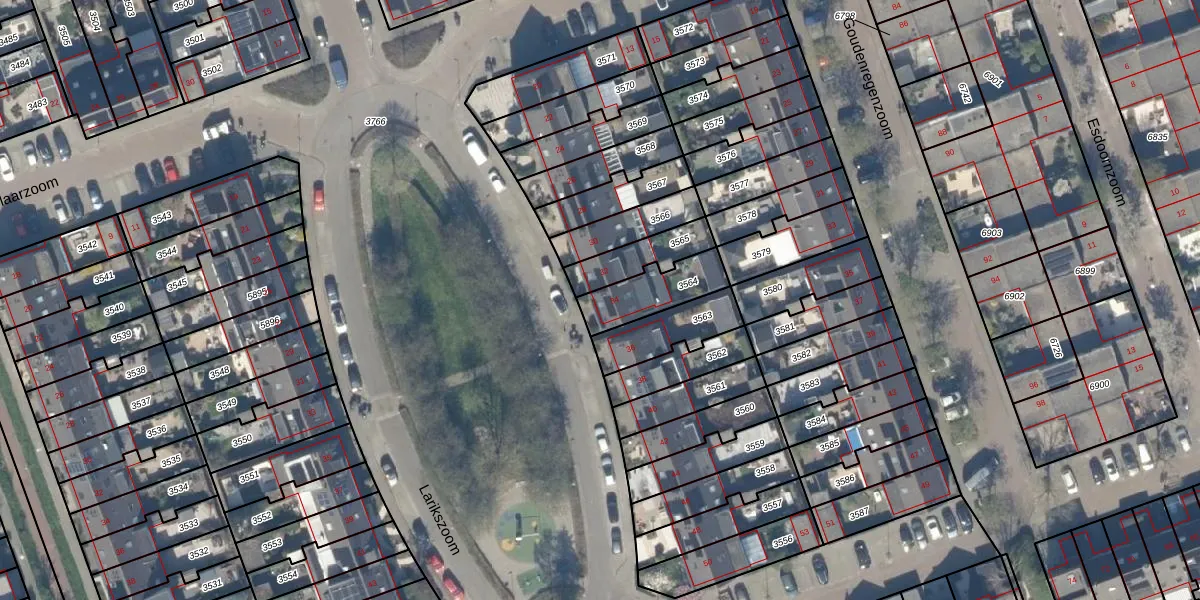 Gebruik de zoekbalk of klik op een perceel voor informatie over de adressen binnen dit perceel.