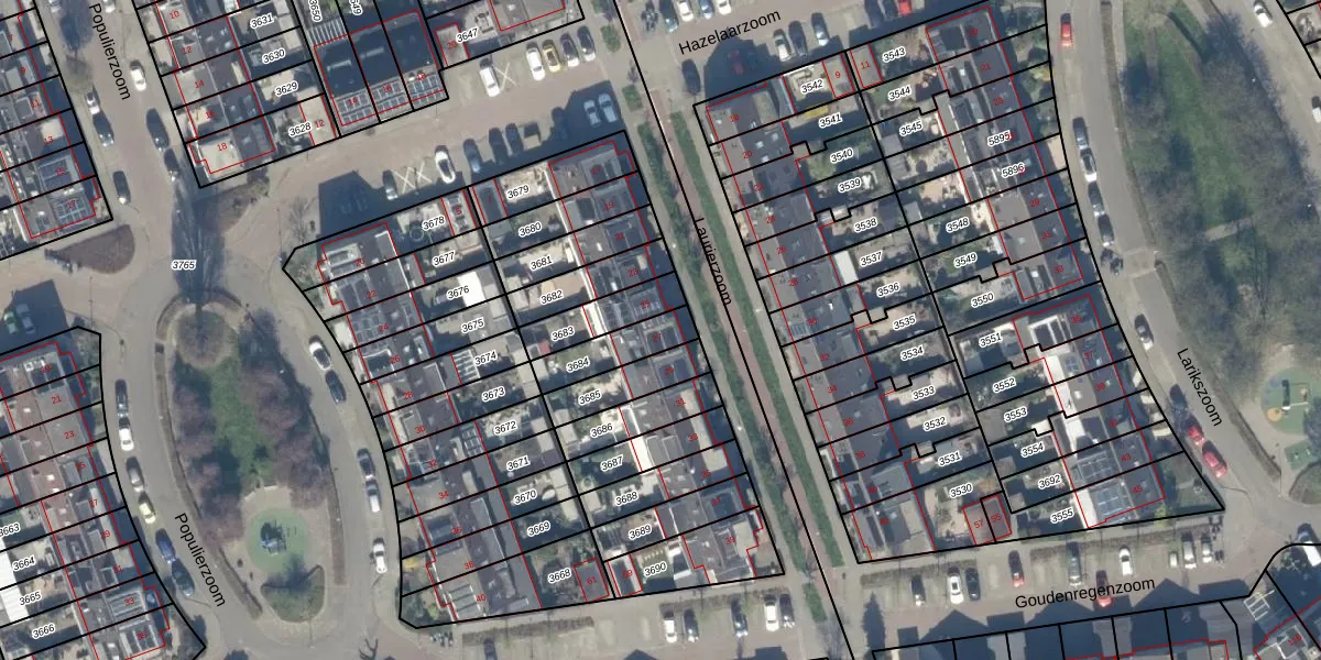 Gebruik de zoekbalk of klik op een perceel voor informatie over de adressen binnen dit perceel.