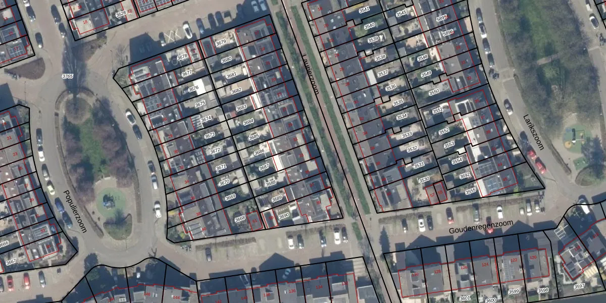 Gebruik de zoekbalk of klik op een perceel voor informatie over de adressen binnen dit perceel.
