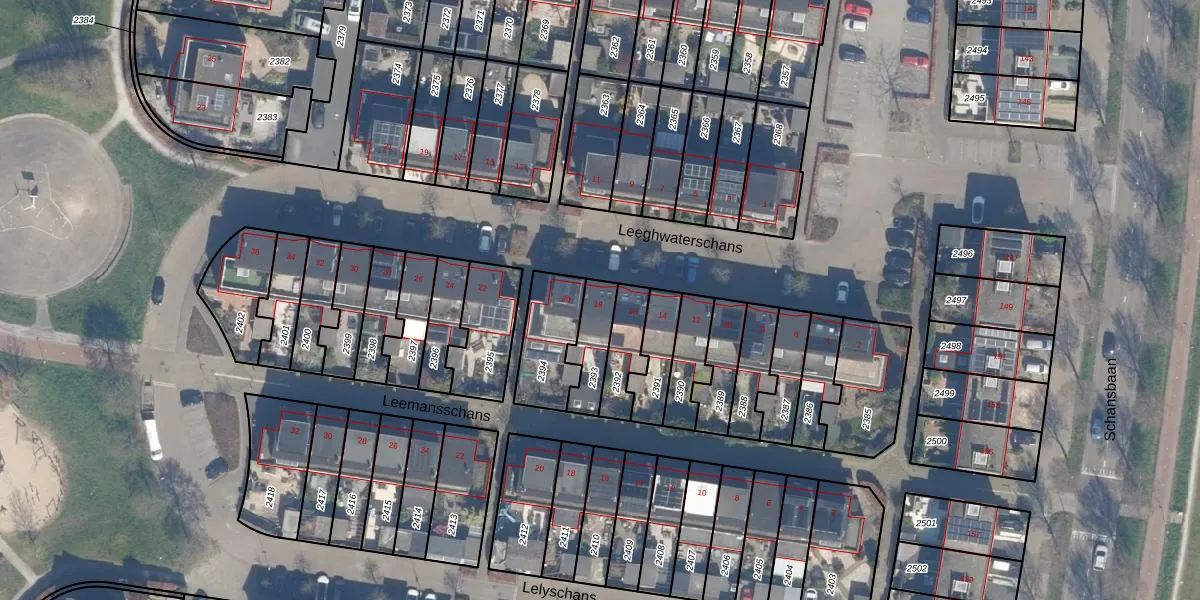 Gebruik de zoekbalk of klik op een perceel voor informatie over de adressen binnen dit perceel.