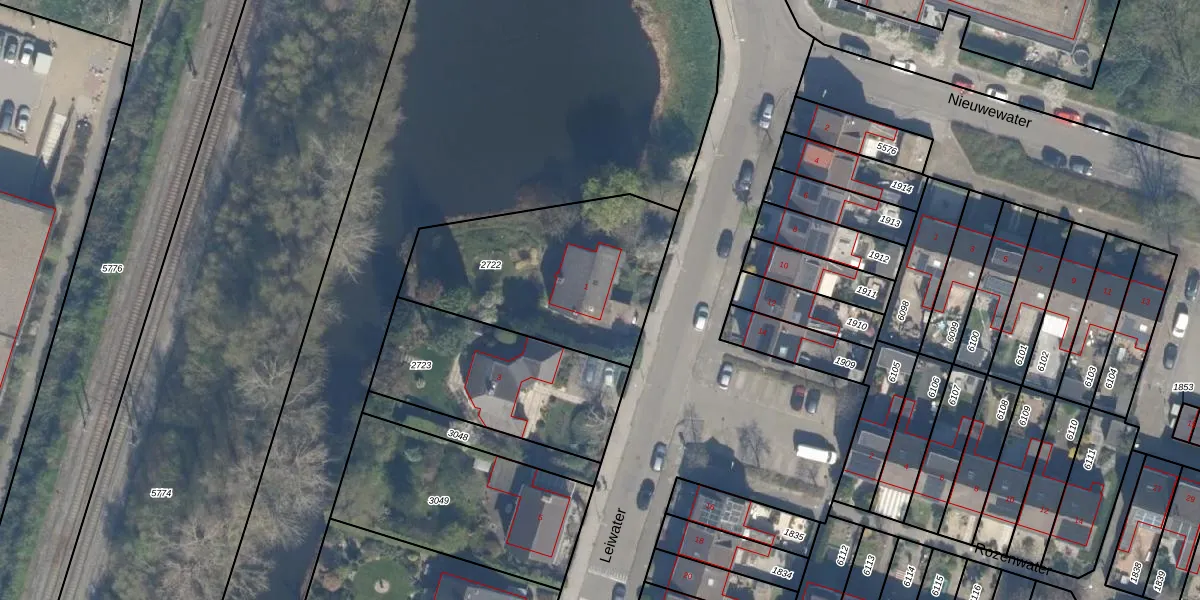 Het perceel waarop Leiwater 1 staat heeft een oppervlakte van 862 m². Dit is een groot perceel. De perceeloppervlakte wordt geregistreerd door het Kadaster. Gedetailleerde informatie over de maten van dit perceel kunt u vinden in het rapport Kadastrale kaart met maatvoering van Leiwater 1.