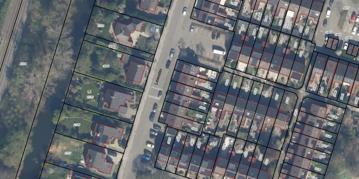 Het perceel waarop Leiwater 20 staat heeft een oppervlakte van 150 m². Dit is een middelgroot perceel. De perceeloppervlakte wordt geregistreerd door het Kadaster. Gedetailleerde informatie over de maten van dit perceel kunt u vinden in het rapport Kadastrale kaart met maatvoering van Leiwater 20.