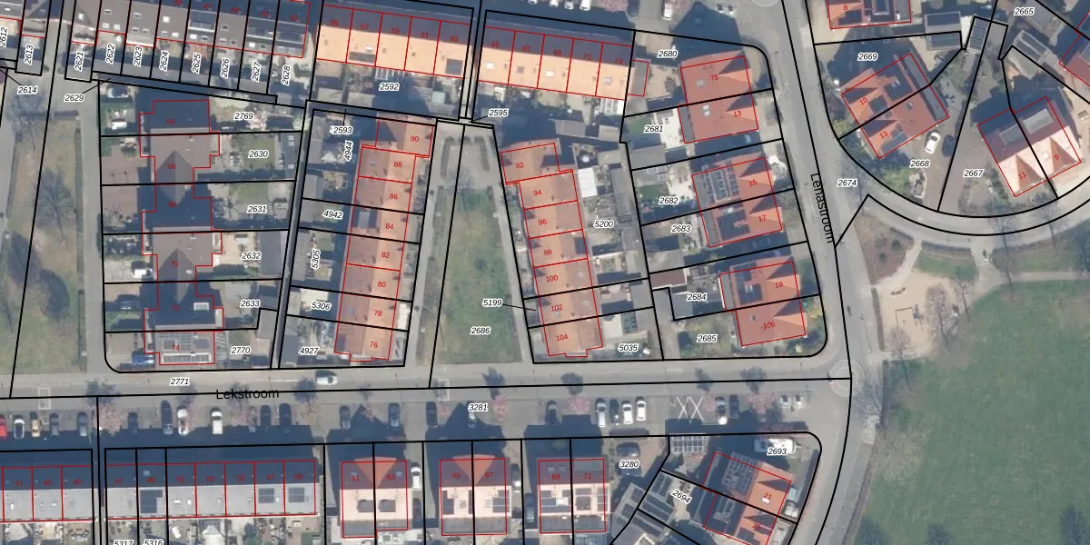 Lekstroom 100 is gelegen op kadastraal perceel ZWD01F5200. Deze kadastrale aanduiding is uniek en wordt gebruikt door het Kadaster om eigendomsrechten en andere zakelijke rechten vast te leggen. Het perceel maakt onderdeel uit van de kadastrale gemeente Zegwaard.