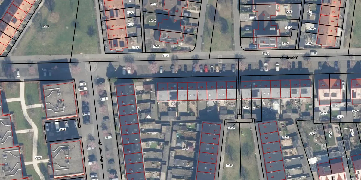 Het perceel waarop Lekstroom 35 staat heeft een oppervlakte van 4713 m². Dit is een zeer groot perceel. De perceeloppervlakte wordt geregistreerd door het Kadaster. Gedetailleerde informatie over de maten van dit perceel kunt u vinden in het rapport Kadastrale kaart met maatvoering van Lekstroom 35.