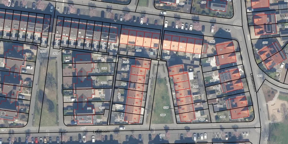 Lekstroom 88 is gelegen op kadastraal perceel ZWD01F4944. Deze kadastrale aanduiding is uniek en wordt gebruikt door het Kadaster om eigendomsrechten en andere zakelijke rechten vast te leggen. Het perceel maakt onderdeel uit van de kadastrale gemeente Zegwaard.