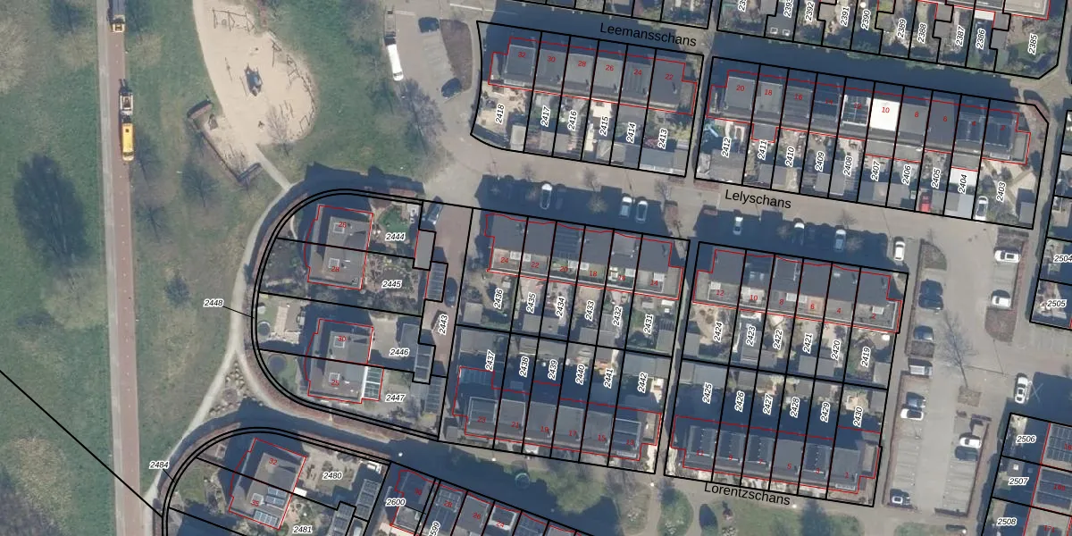 Gebruik de zoekbalk of klik op een perceel voor informatie over de adressen binnen dit perceel.