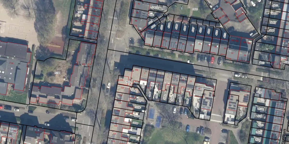 Gebruik de zoekbalk of klik op een perceel voor informatie over de adressen binnen dit perceel.